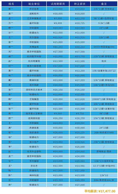 參加高薪就業項目的學員入學即簽訂就業保障協議,保障就業薪資10000+。以訂單培養的形式輸送到華為、移動、國家電網、潤和、神州數碼、浩鯨、中國擎天軟件等知名企業。根據學生個人意愿結合企業用人需求,落實在南京、蘇州、濟南、北京、上海、杭州、深圳等城市就業。