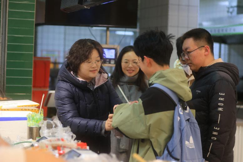 早餐發放過程中,王小露副書記對同學們寄語“希望你們在早春之際,萬物蓬勃開展之時,與東方紅日一同冉冉升起,傳承通院人‘醒得早、起得早、動得早’的優良品質,勤勉篤行,踔厲奮發,成為續寫通信與信息工程學院新篇章的朝陽一代。”