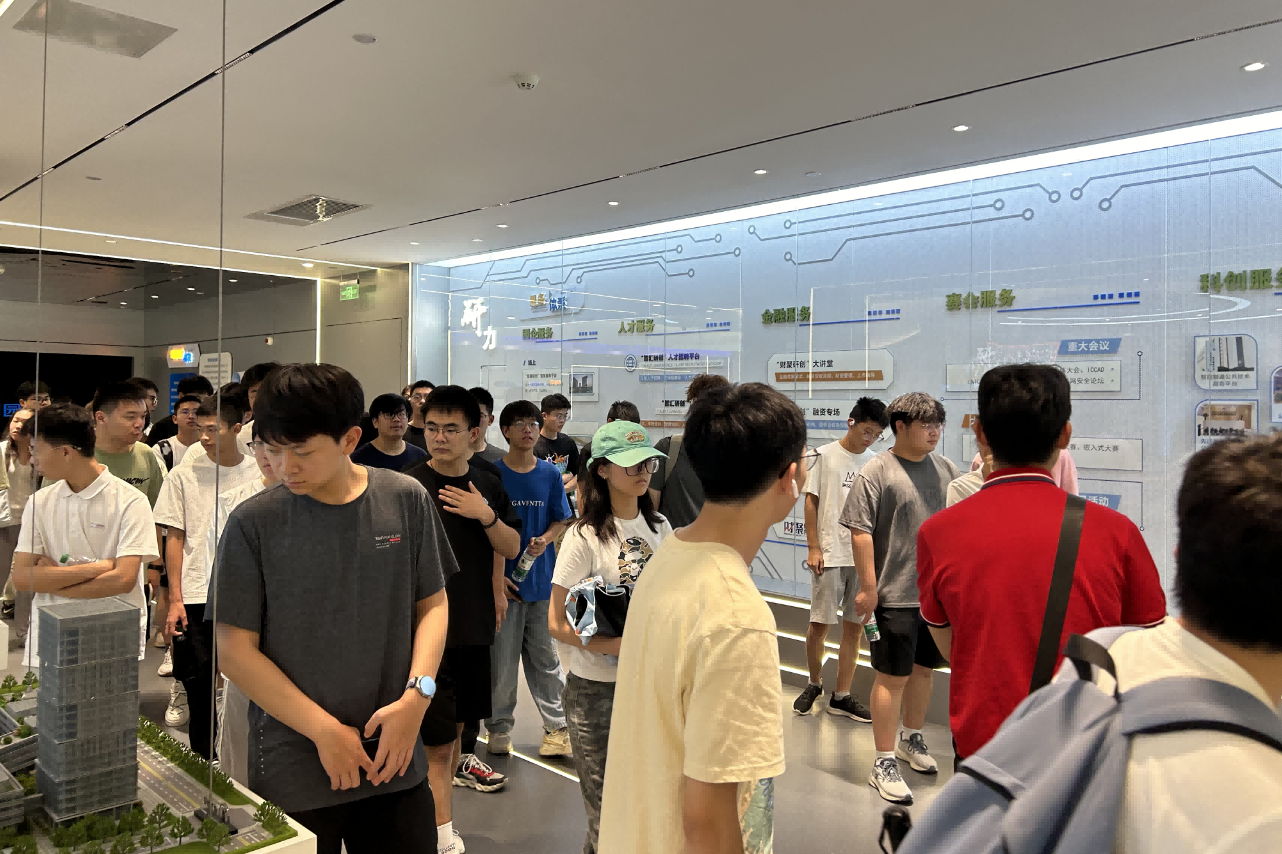 在專業講解員的帶領下,學員們第一時間深入分析了研創園的整體科技布局。“研創園作為南京江北新區科技創新的核心區域,”講解員介紹道,“致力于構建以大數據、云計算、人工智能為核心的數字生態系統,吸引并孵化了一大批高新技術企業,形成了涵蓋信息技術、大數據、人工智能、云計算、集成電路、智能研發等多個領域的產業集群。”隨著講解的深入,學員們被園區前瞻性的規劃和深厚的科技創新底蘊所震撼。
