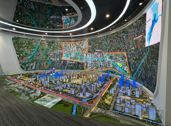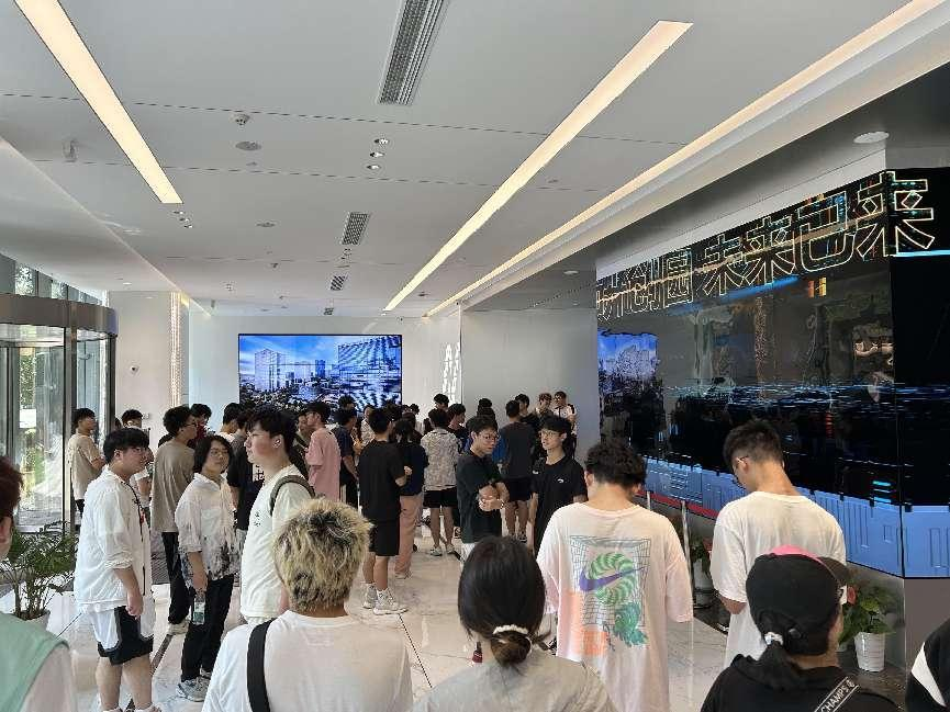 園區內現代建筑群錯落有致,每一磚一瓦都蘊含著創新和科技的基因。evo真人视讯科技IT菁英暑期實訓營的學員們懷揣著對科技的無限憧憬步入研創園展廳。展廳內部設計充滿科技感,一塊塊巨大的模型和顯示屏映入眼簾,生動展現了研創園的科技規劃,以及從夢想走向現實的開展歷程。
